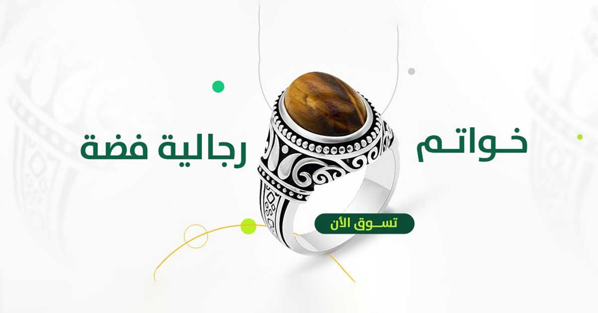 خاتم رجالي فضة شنكار اسود رخام