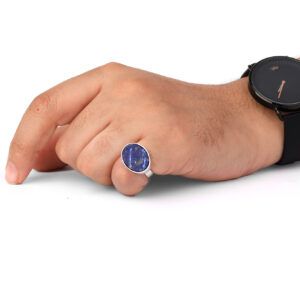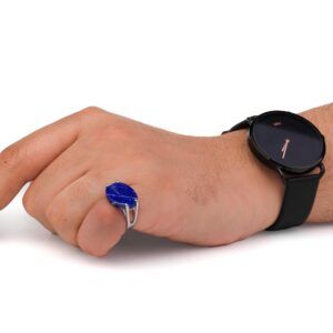 خاتم رجالي فضة شنكار حجر ازرق معرق