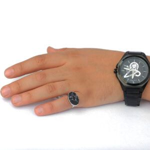 خاتم ملكي فص عقيق اسود معرق-متجر فونيم