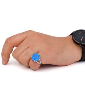 خاتم فضه عقيق ازرق معرق دائري-متجرفونيم