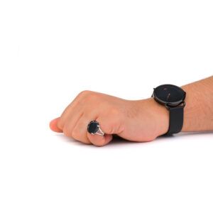 خاتم فضه شنكار اسود معرق دائري-متجرفونيم