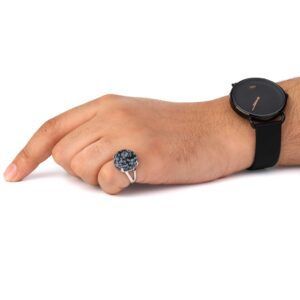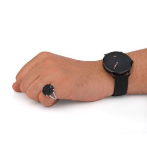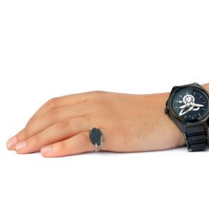 خاتم فضه اسود معرق دائري-متجرفونيم
