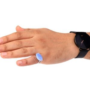 خاتم فضه فص عقيق سماوي بيضاوي-متجرفونيم