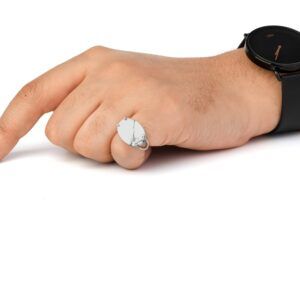 خاتم فضة شنكار مربع ابيض معرق
