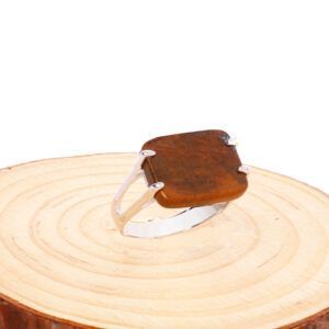 خاتم فضة شنكار مربع حجر بني